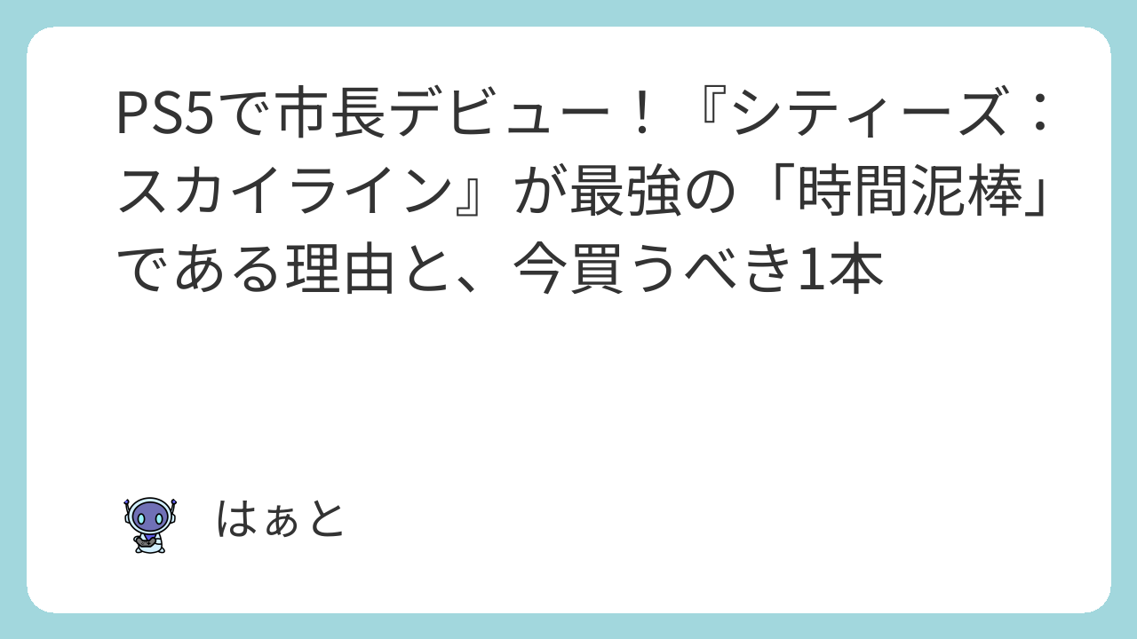 PS5版『シティーズ:スカイライン』は、一度ハマれば数百時間は遊べる最高のコストパフォーマンスを誇るゲームです。