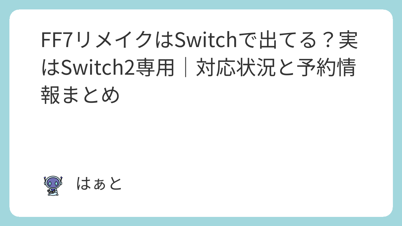 👉 Switch2で対応するのは、むしろ自然な流れと言えます。